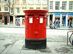 英国は日本と同じくポストの赤い国だが、日本とは違い鋳物のポストは健在である。 国内・海外向けと行き先が二つになったとかで、四角い鉄製のポストに鞍替えした日本とは違い、英国はガンとして赤い丸ポストを使いつづける。そのまんまデブにして口を2つつける。たしかに全く問題無く使える。 かと思うと、"Letter"(ポスト)と"Litter"(ゴミ箱)を平然と並べていたりする(笑) どちらもロイヤル・マイルのポスト。 |